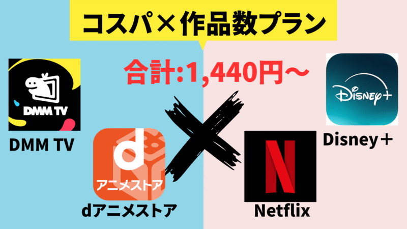 「DMMTV」or「dアニメストア」×「Netflix」or「Disney+」