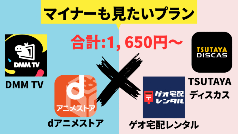 - DMMTVでマイナー作品、アマプラでヒット作品を網羅するプラン